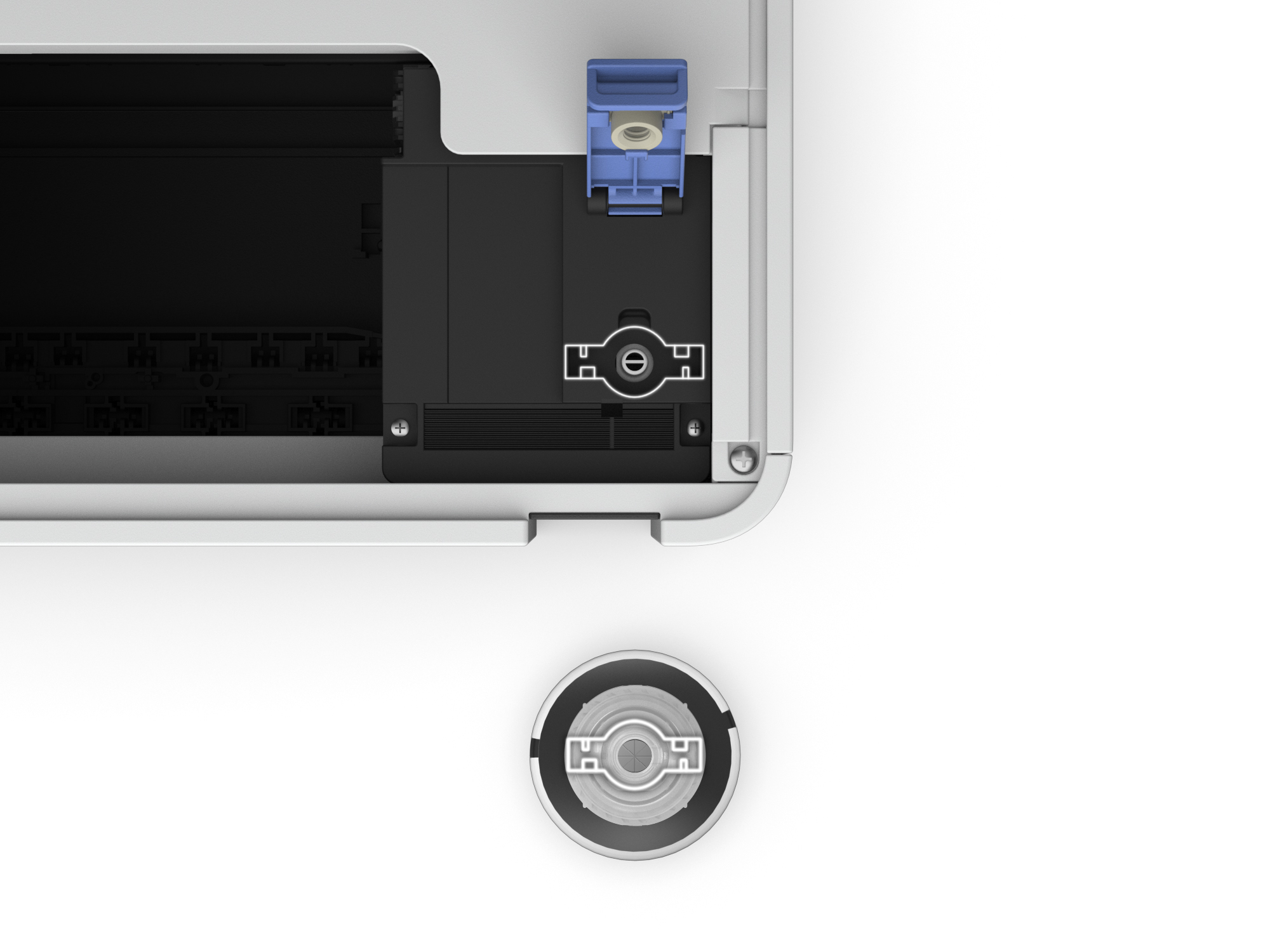 Üblicherweise sind nur hin und wieder neue Tintenflaschen erforderlich, daher können Sie mit den Ersatztintenflaschen über 90 % der Kosten pro Seite einsparen3. Der nach vorne gerichtete Tank des Druckers ist auf sauberes Nachfüllen ausgelegt, und die Flaschen verfügen über ein Lüftungssystem, sodass während des Füllvorgangs kein Quetschen erforderlich ist. An der Tintenfüllstandsanzeige vorne sehen Sie ganz leicht, wann das Nachfüllen ansteht.
